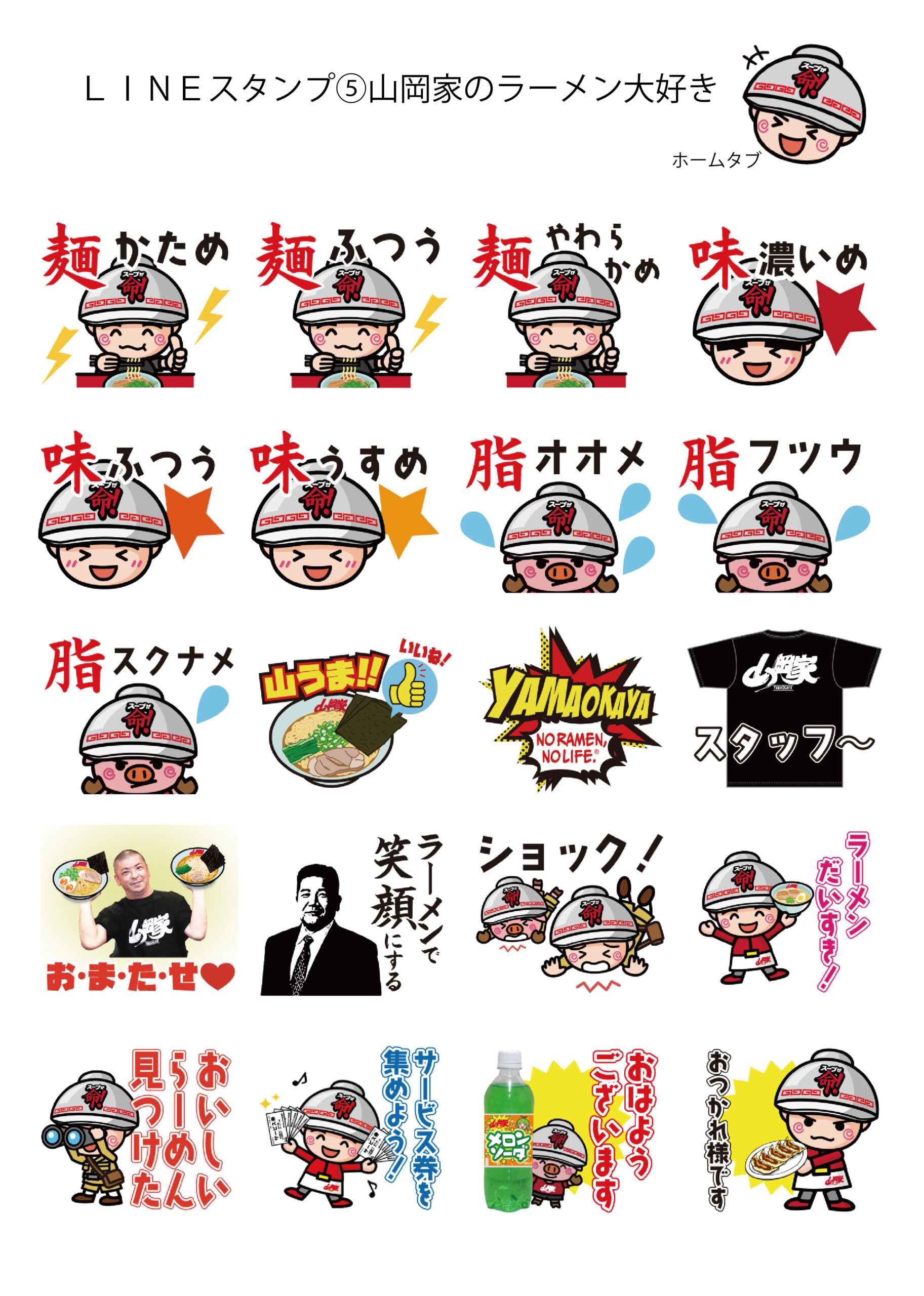 LINEスタンプに第9弾目が新登場!! LINEスタンプ第9弾 北海道弁バージョン ダウンロードはこちら LINE着せ替えヤマオカマン(ブラック)ダウンロードはこちら 動くラーメン山岡家スタンプ1 ダウンロードはこちら LINE着せ替え(ヤマオカマン) ダウンロードはこちら LINEスタンプ第1弾 スタンダード ダウンロードはこちら LINEスタンプ第2弾 スタンダード② ダウンロードはこちら LINEスタンプ第3弾 ウィンターバージョン ダウンロードはこちら LINEスタンプ第4弾 ビジネスバージョン ダウンロードはこちら LINEスタンプ第5弾 山岡家のラーメン大好きバージョン ダウンロードはこちら LINEスタンプ第6弾 スタンダード6 ダウンロードはこちら 絵文字 第1弾 ダウンロードはこちら LINEスタンプ第7弾 サムライバージョン ダウンロードはこちら LINEスタンプ第8弾 ワイルドバージョン ダウンロードはこちらから 一覧ページへ