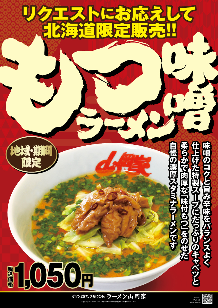 ラーメン山岡家で期間限定販売しております「もつ醤油ラーメン」は、2025年9月29日(月)をもちまして販売終了となります。